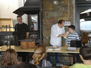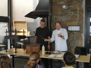 Sabela eta koadernoa ondo beteta itzuli ginen gelara. Eskerrik asko bihotzez. Zoragarria izan da Getariako historia eta gastronomia bertatik bertara ezagutzeko aukera izatea. Nork daki, agian, gure artean etorkizuneko sukaldariren bat egongo da! Suak piztuta jarrai beza!