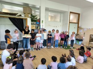 Eguerdi partean, LH3A gelakoak HH2ra joan gara ipuina kontatzera. Pasa den astetik prestatzen aritu garen istorioa denon artean kontatu diegu. Eserita eta adi jarraitu dute kontakizuna Eskolako txikienek. Asko gustatu zaie eta liburua bertan utzi behar izan dugu.