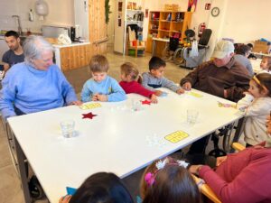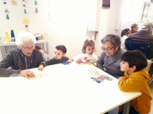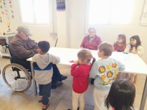 Getariko eskolatik eguneko zentrora paseotxo bat baino ez dago, erraz egin daitekeena. Zeinen gertu gauden distantzian, urrutixeago urteetan barrena, ta ziurrenik, urrunegi eguneroko martxan. Etxera iritsitakoan, amari besarkada bat eman eta “maite zaitut” esateko esan dio Domingak haur bati eskuetatik helduta. 97 urte ditu eta berak badaki guk oraindik ikasteko dauzkagun gauza asko. Elkarrekin abestu dugu, eta bingoan jolastu, eta oso gertu sentitu gara, lau urteko haurrak eta noizbait lau urteko haur izan zinetenak. Momentua bizitzeko esan digute, ez egoteko ostiralaren zain poz hori gureganatzeko, beti dela orain, eta horrek inporta duela.