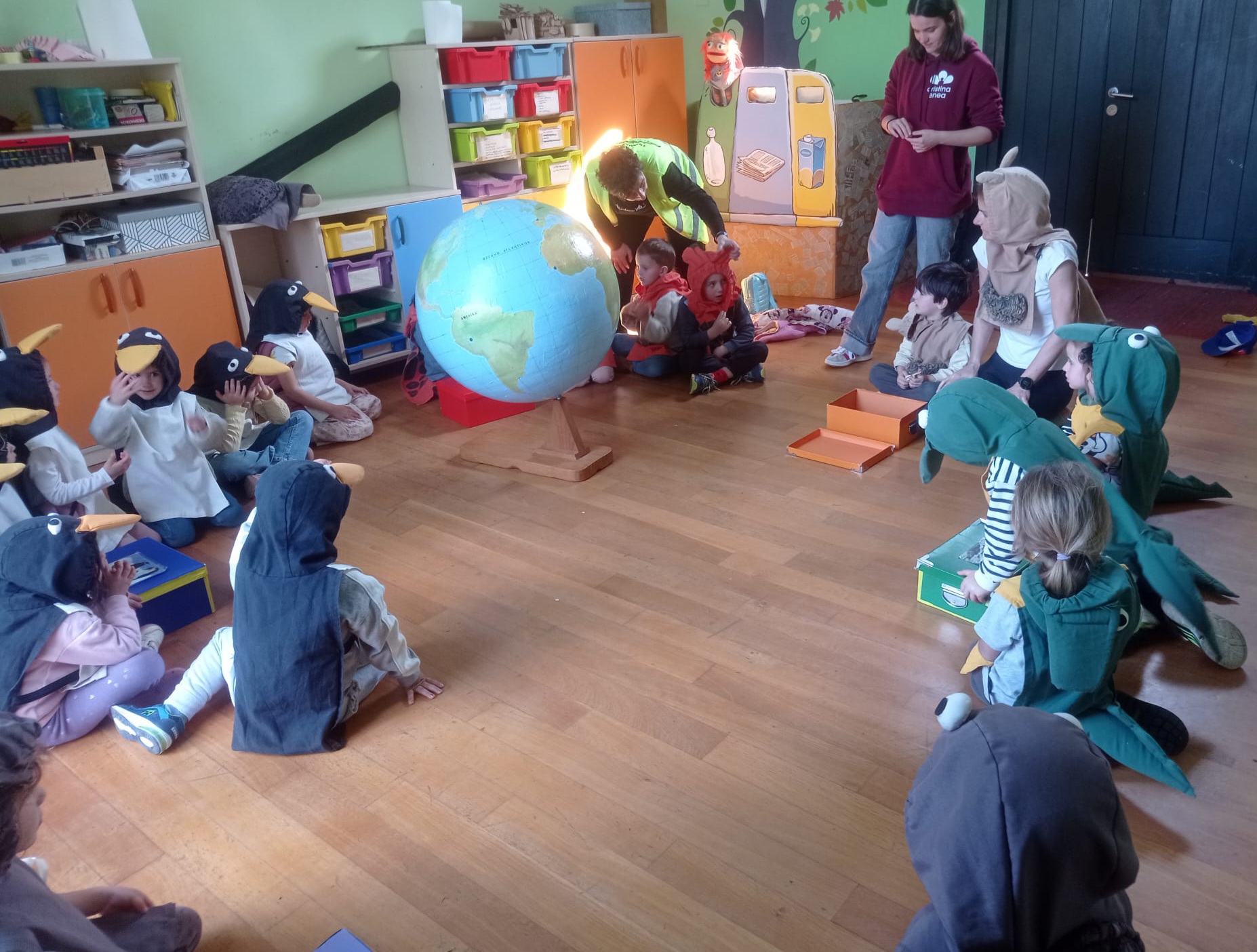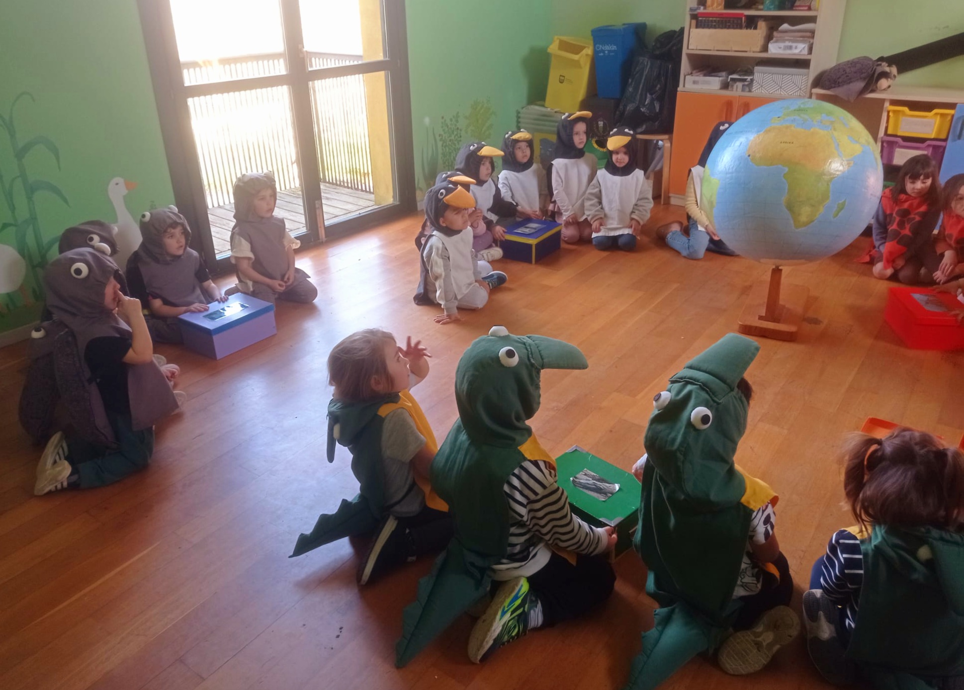 12:00etan โEta zu nongoa zara?โ tailerrean parte hartu genuen. Jarduera honetan hainbat animaliaz mozorrotu ginen: dortokak, kanguruak, jirafak, pinguinoak eta krokodiloak. ๐ข๐ฆ๐ง๐ Tailerrari esker animalia bakoitzaren jatorria ezagutu genuen eta haiei buruzko hainbat bitxikeria interesgarri ikasi genituen.