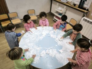 Gure eskola ibilbidea hasi berri dugu, eta hiruhileko honetan zehar hamaika abentura bizi izan ditugu. Ostiral goiza oso-oso berezia izan zen, aldapa behera abiatu eta Katxapo Haurreskolara joan baikinen, bertako txikiei abestera. Han, Getariako txikienak elkarturik, hasieran lotsati eta gero bihurri, elkarren ondoan dantzatuz eta jolasten ibili ginen.