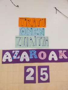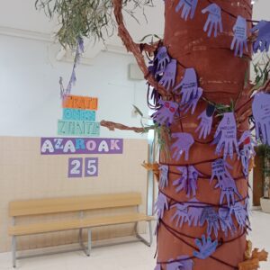 Gaur, azaroak 25, Emakumearen aurkako Indarkeria Ezabatzeko Nazioarteko Eguna ospatu dugu  Eskolan. Egun honek garrantzi berezia du gure komunitatean, eta tutoretzetan gai hau modu egokian lantzeko tartea hartu dugu, hausnarketa eta kontzientzia sortuz.