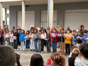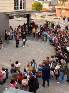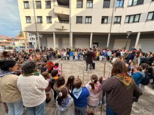 Ondoren, Zaharren Egoitzara gerturatu gara, gure ospakizuna bertako egoiliarrekin partekatzeko. 6. mailako ikasleek koplak abestu dituzte han, eta une hunkigarriak bizi izan ditugu; irribarreak eta txaloak nagusi izan dira.